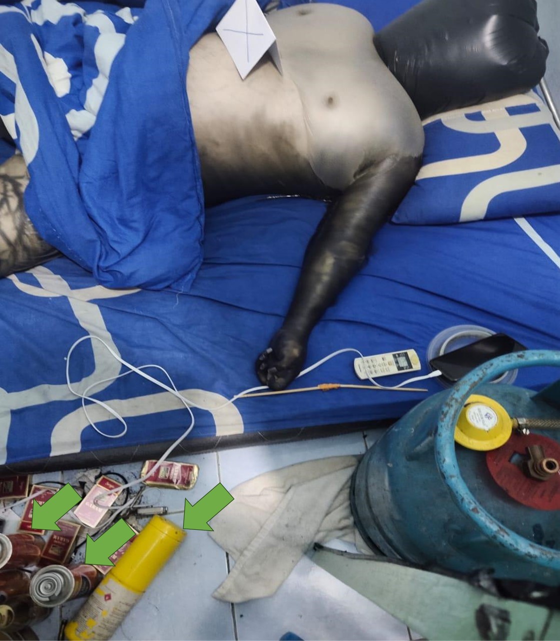Gas petroleum cecair biasanya mengandungi butana dan propana, yang tergolong dalam keluarga hidrokarbon alifatik yang tidak berwarna dan tersedia secara komersial. Kadang-kadang disalahgunakan sebagai bahan inhalan meruap yang boleh mengubah keadaan mental atau untuk membunuh diri. Kes kematian yang tidak disengajakan akibat kombinasi penyedutan hidrokarbon dari gas petroleum cecair dan sesak nafas disebabkan oleh beg plastik jarang dilaporkan. Seorang lelaki berusia 44 tahun dilaporkan ditemui berbogel, hanya sebahagiannya ditutup dengan selimut di dalam biliknya, dengan kepala ditutup dengan beg plastik nipis berwarna hitam dan disambungkan ke tangki silinder gas memasak. Beg plastik itu diubah suai untuk mengelakkan kebocoran gas. Tambahan pula, peralatan pornografi juga ditemui pada telefon bimbit di sebelahnya. Tiada risiko bunuh diri dicatatkan sebelum kematian. Penyiasatan mengenai kematian yang berkaitan dengan penyedutan gas petroleum cecair berserta dengan beg plastik di kepala, adalah penting untuk memahami cara kematian dalam kes seperti ini. Kes ini menimbulkan persoalan mengenai kemungkinan kematian tidak sengaja memandangkan ketiadaan petunjuk bunuh diri yang jelas menunjukkan kemungkinan kematian yang tidak disengajakan.