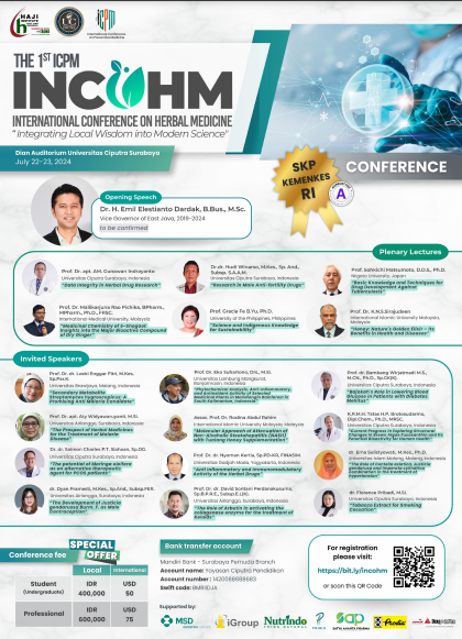 Conference Published on 08 Oct, 2024 International Conference on Herbal Medicine INCOHM Vol. 19 No. 6 (suppl) : 2024 (1-33) Keywords : Conference, Kata Kunci : persidangan, Download article Related Articles Conference 08 Jan, 2026 17TH Medical Undergraduates' Annual Scientific Research Meeting Conference 07 Jan, 2026 World Ethics Day Symposium Conference 31 Dec, 2025 2nd Artificial Intelligence & Medical Education Conference 17 Dec, 2025 31st Regional Congress of The Perinatal Society of Malaysia Conference 21 Nov, 2025 Postgraduate Research Conference 2025 Conference 18 Nov, 2025 29th Malaysian Conference of Psychological Medicine