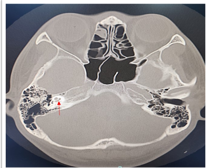 Penyakit koronavirus 2019 (COVID-19) adalah penyakit yang sangat berjangkit. Komplikasi penyakit ini berkurangan dengan ketara selepas pengenalan vaksin. Oleh itu, vaksinasi untuk COVID-19 adalah penting dan telah digalakkan di banyak negara. Laporan mengenai kesan sampingan serius yang jarang berlaku telah didokumenkan dengan baik. Kesan otologi selepas vaksinasi COVID-19 yang secara tiba-tiba kehilangan pendengaran sensorineural (SNHL) belah kanan juga dilaporkan. Kami membincangkan kes labyrinthitis ossificans selepas vaksinasi COVID. Seorang lelaki berusia 23 tahun mengalami kehilangan pendengaran sebelah kanan secara tiba-tiba dengan kesan gigitan 3 hari selepas menerima vaksin COVID-19. Audiometri Nada Tulen (PTA) menunjukkan kehilangan pendengaran dalam yang ketara pada sebelah kanan dengan pendengaran sebelah kiri yang normal. Tomografi Berkomputer Resolusi Tinggi (HRCT) pada tulang temporal menunjukkan hiperdensiti yang dilihat pada selekoh basal koklea kanan, dengan Pengimejan Resonans Magnetik (MRI) menunjukkan kehilangan fokus intensiti isyarat hiperintens berwajaran T2 normal bagi tympani scala selekoh koklear, yang mencadangkan labyrinthitis ossificans. Beliau dipasangkan dengan alat bantu pendengaran dan menjalani implan koklear kanan untuk pemulihan pendengaran. Labyrinthitis ossificans biasanya disebabkan oleh jangkitan dan keradangan, dan jarang disebabkan oleh trauma, tumor, pendarahan, halangan vaskular arteri labirinthine, pembedahan atau penyakit telinga dalam autoimun. Hubungan dengan vaksinasi masih belum didedahkan dan memerlukan kajian lanjut.